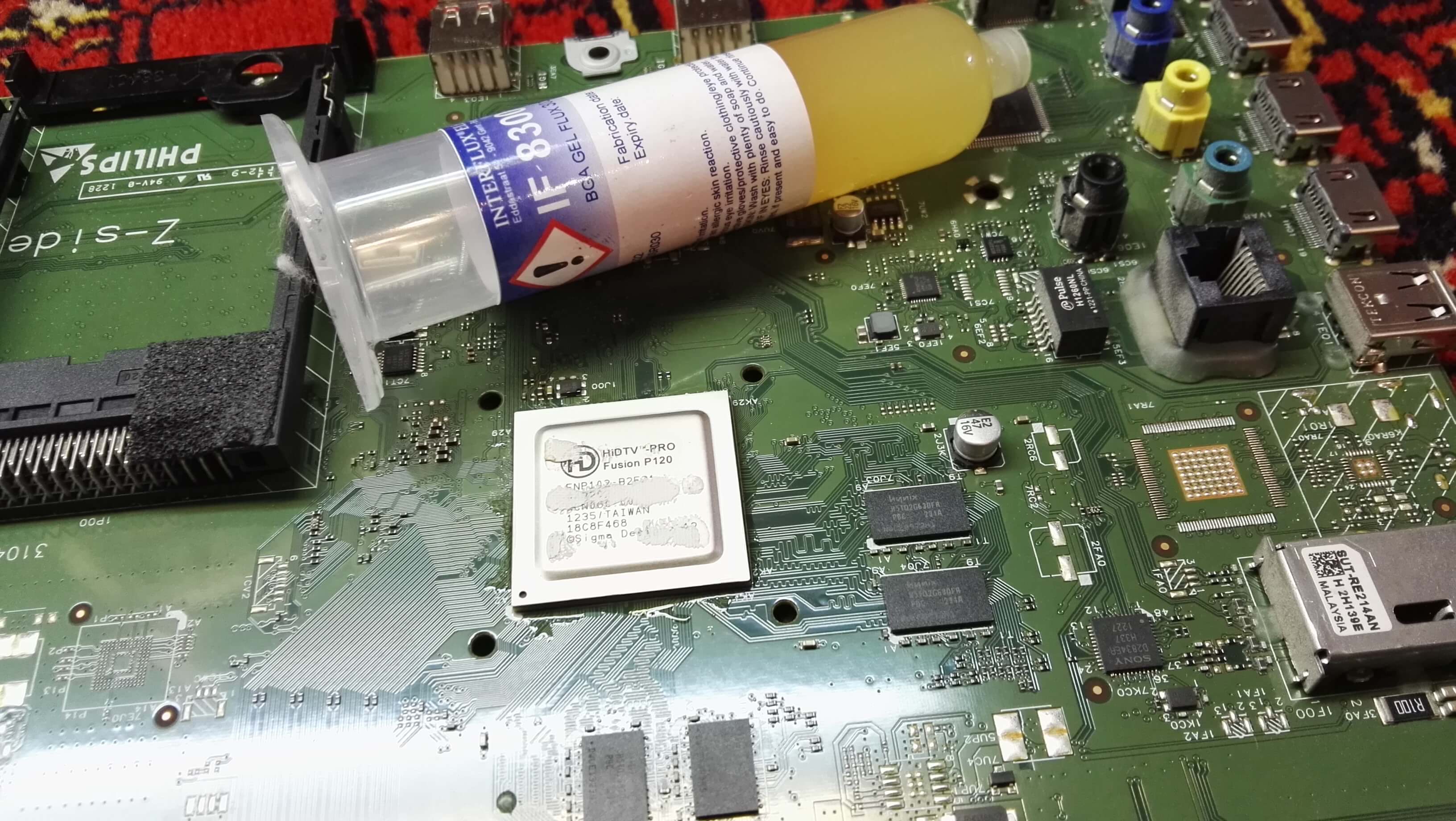 Осталось смыть остатки флюса и передать коллегам для теста, так как нам передали плату без телевизора. Забрав плату наши друзья перезвонили через пару часов и сообщили что все прошло хорошо, телевизор ожил. Еще один удачный ремонт в нашем багаже реанимированной техники.
