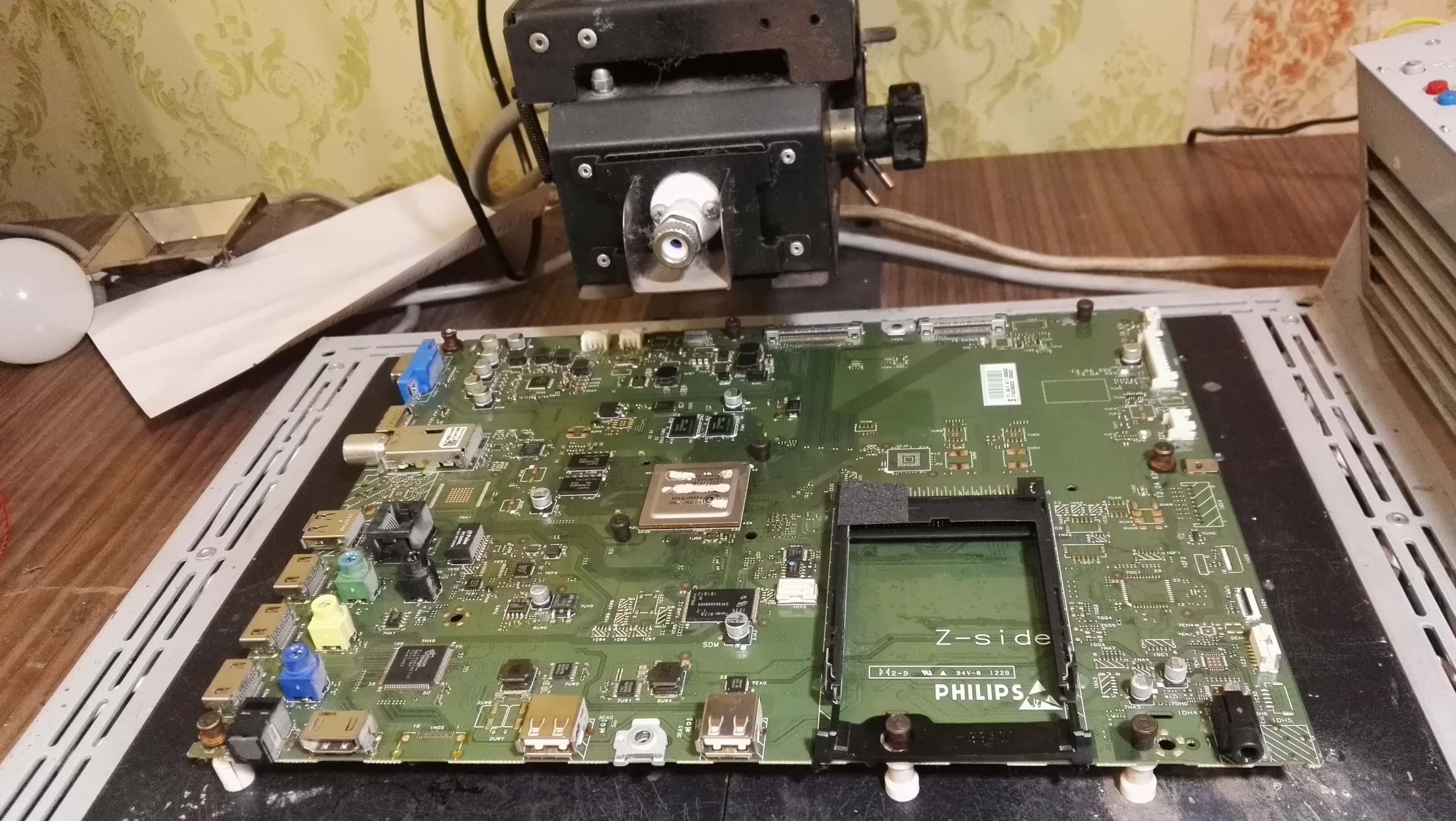 Наши коллеги из партнерского сервисного центра попросили прогреть процессор на майн плате Philips 3104 313 65664. Отвал процессора является очень частой проблемой этой платы. Не в каждой мастерской имеет необходимое профессиональное паяльное оборудование. К счастью у нас оно есть и активно используется с 2012 года.