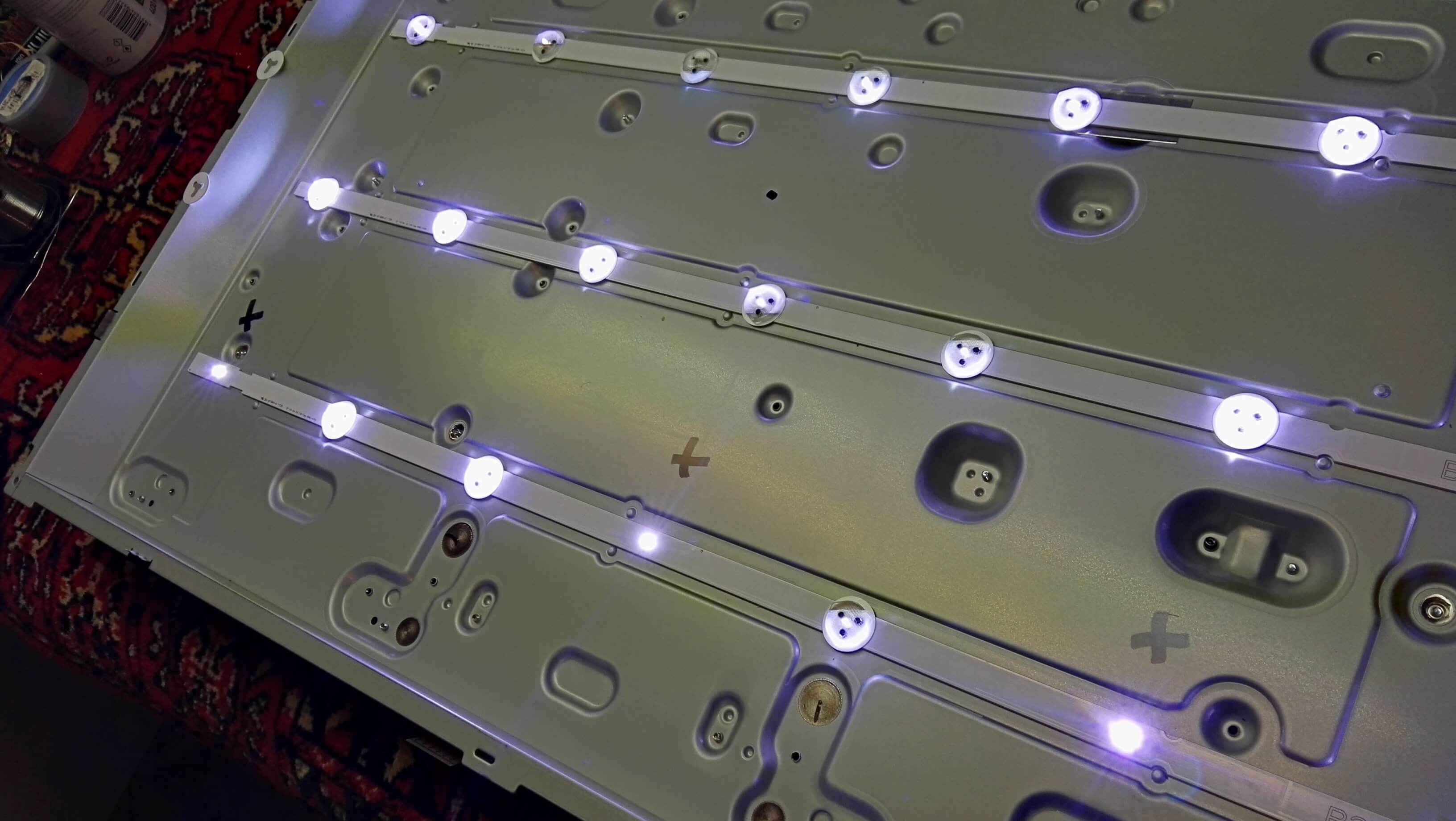 Стандартный ремонт который нами выполнялся многократно. Заменена была одна планка подсветки. Доработку БП мы сделали в подарок клиентам бесплатно. Стыдно требовать за такую работу деньги. Забрав бытовой прибор заказчик ушел вполне довольным. Надеемся вам пригодилась наша инструкция. Всем спасибо за внимание.